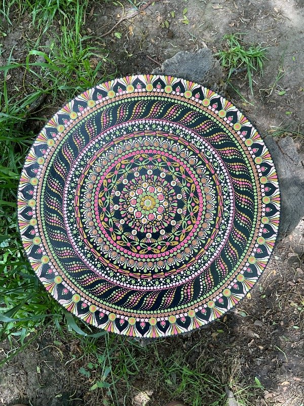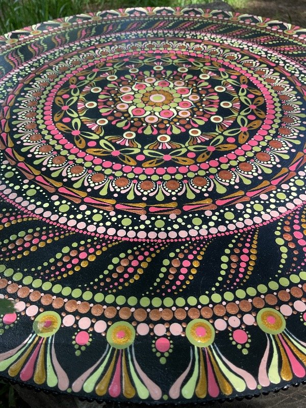 Pintado con acrílicos en técnica de puntillismo.