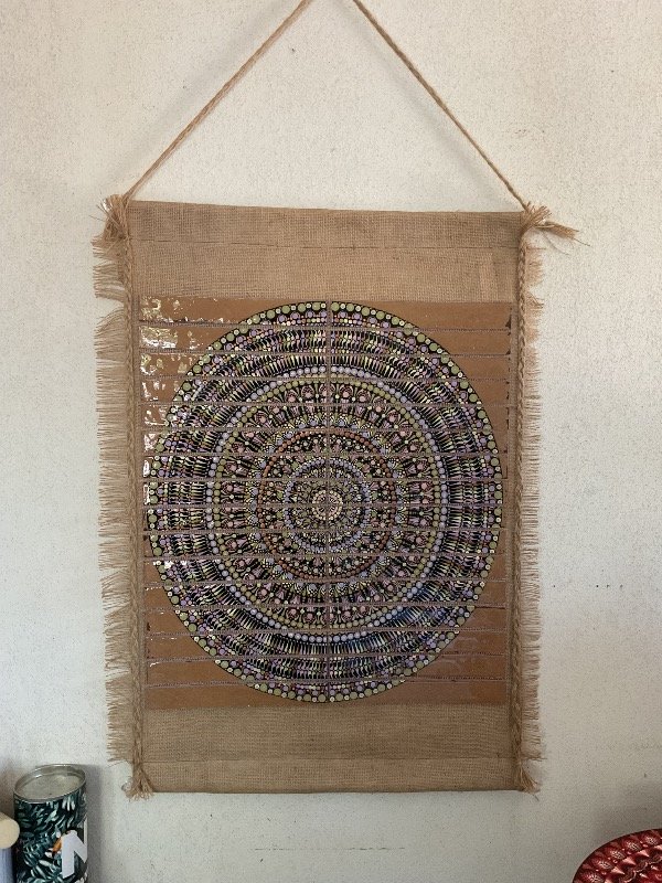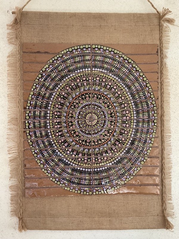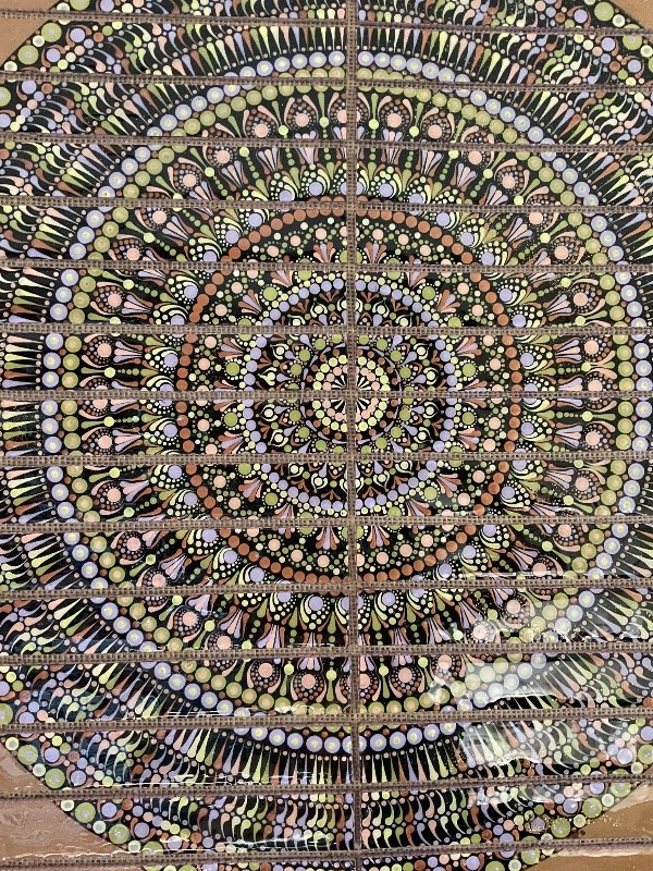32 piezas de un Mandala, pintadas artesanalmente con acrílicos en técnica de puntillismo.