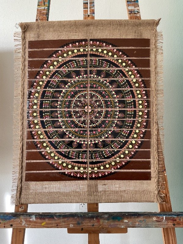 32 piezas de un Mandala, pintadas artesanalmente con acrílicos en técnica de puntillismo.