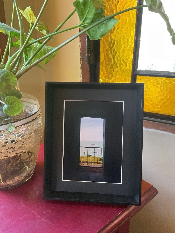 Fotografía de 19x14 enmarcada con vidrio y paspartú. Medida total 27x22